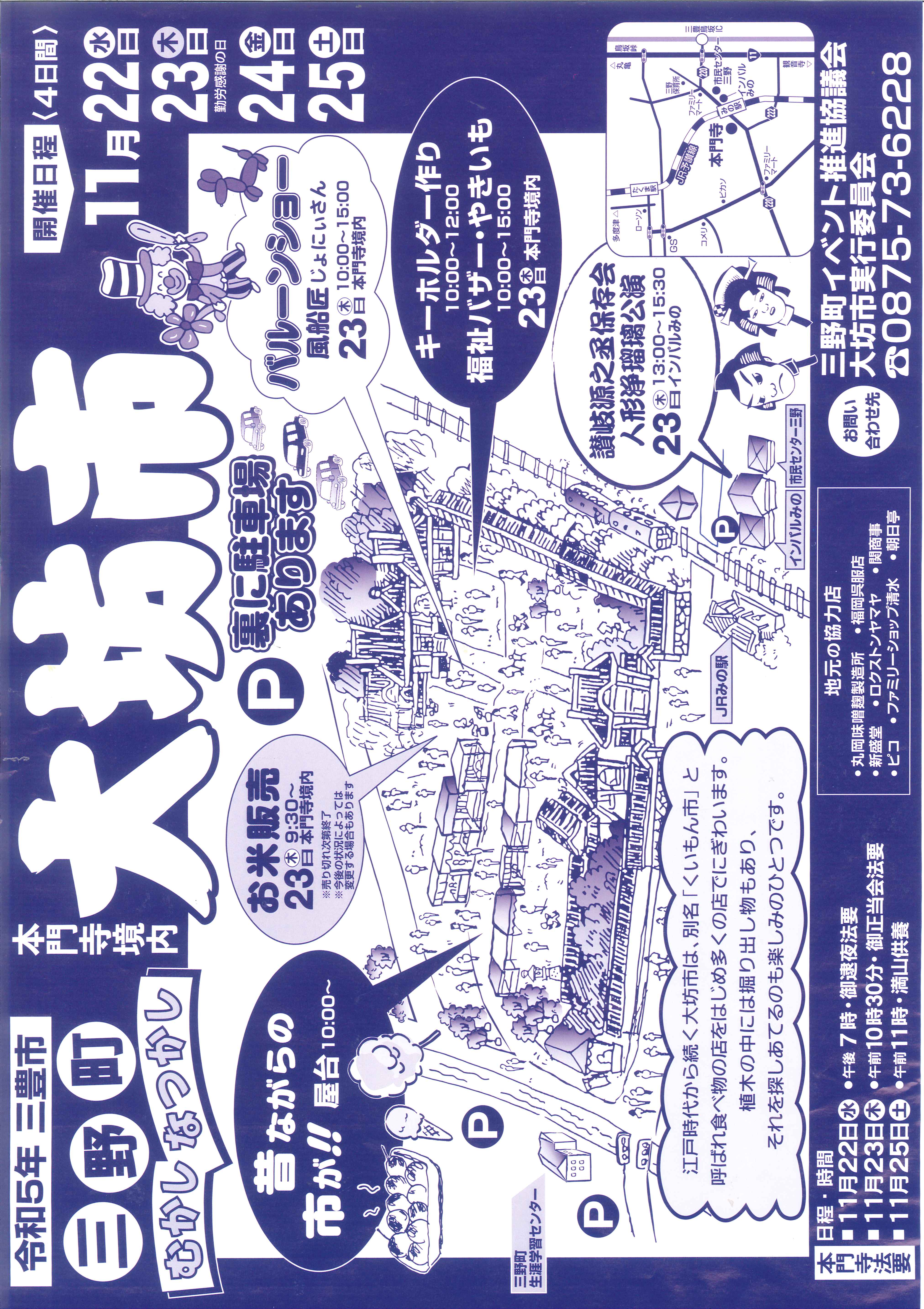 三豊市三野町下高瀬 本門寺境内と周辺にて大坊市を開催します